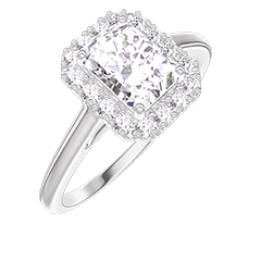 « L'ATELIER » Nº 190100Bague Or blanc 9 carats - Diamant synthétique Rectangle 0.5 carat - Halo Diamant synthétique 4.7 (46)