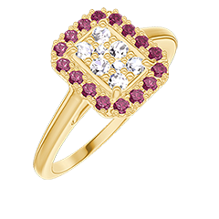 « L'ATELIER » Nº 211514Bague Or jaune 9 carats - Cluster de diamants naturels Rectangle équivalent 0.5 - Halo Rubis 4.9 (44)