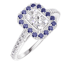 « L'ATELIER » Nº 211535Bague Or blanc 18 carats - Cluster de diamants naturels Rectangle équivalent 0.5 - Halo Saphir bleu - Sertissage Diamant 4.8 (49)