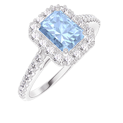 « L'ATELIER » Nº 211918Bague Or blanc 18 carats - Topaze bleue Rectangle 0.5 carat - Halo Diamant - Sertissage Diamant 4.7 (46)