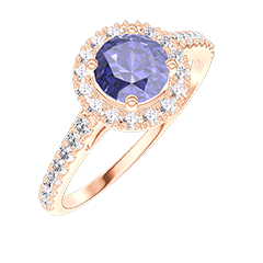 « L'ATELIER » Nº 1009925Bague Or rose 18 carats - Saphir synthétique Rond 0.5 carat - Halo Diamant synthétique - Sertissage Diamant synthétique 4.7 (18)
