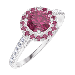 « L'ATELIER » Nº 170312Bague Or blanc 9 carats - Rubis Rond 0.5 carat - Halo Rubis - Sertissage Diamant 4.7 (18)