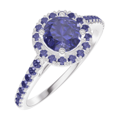 « L'ATELIER » Nº 170623Bague Or blanc 18 carats - Saphir bleu Rond 0.5 carat - Halo Saphir bleu - Sertissage Saphir bleu 4.7 (18)