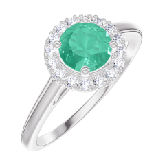 « L'ATELIER » Nº 170868Bague Or blanc 9 carats - Émeraude Rond 0.5 carat - Halo Diamant 4.7 (18)