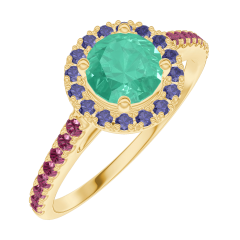 « L'ATELIER » Nº170906Bague Or jaune 9 carats - Émeraude Rond 0.5 carat - Halo Saphir bleu - Sertissage Rubis 4.7 (18)