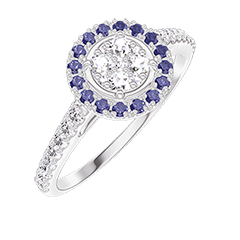 « L'ATELIER » Nº 211439Bague Or blanc 18 carats - Cluster de diamants naturels Rond équivalent 0.5 - Halo Saphir bleu - Sertissage Diamant 4.7 (18)