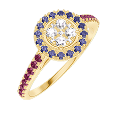 « L'ATELIER » Nº 211441Bague Or jaune 18 carats - Cluster de diamants naturels Rond équivalent 0.5 - Halo Saphir bleu - Sertissage Rubis 5 (18)