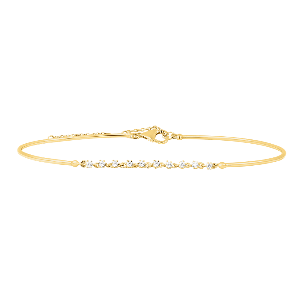 Gracile est un bracelet jonc en or jaune orné de fins diamants. Sa chaîne délicate et design épuré en font une pièce essentielle pour une touche de finesse et d'élégance.