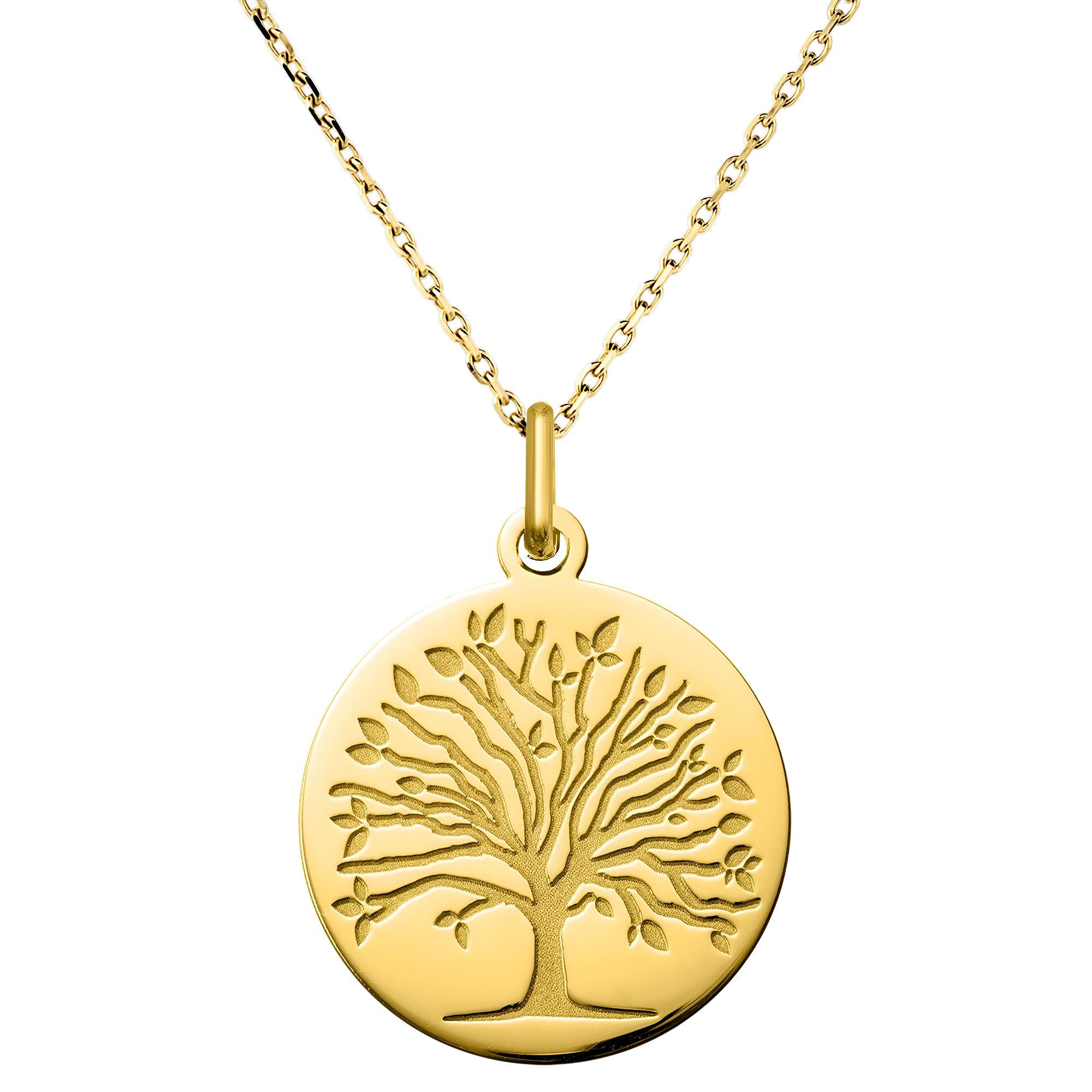 Cette médaille en or jaune 9 carats arbore un Arbre de Vie finement gravé, symbole de force, de croissance et de racines profondes nourrissant l’existence. Son design met en valeur l’arbre avec ses branches étendues et ses feuilles délicates, évoquant l’évolution et le lien entre nature et humanité. Le relief subtil confère une élégance discrète à ce bijou, qui se porte au quotidien comme un talisman précieux. Personnalisable par gravure au dos, il est livré dans un écrin raffiné, idéal pour un cadeau symbolique à l’occasion d’un anniversaire ou d’un baptême.… Voir plus Infos techniques