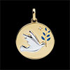 Médaille Colombe au rameau - Laque bleu - 1 Diamant - or blanc et or jaune 18 carats