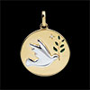 Médaille Colombe au rameau - Laque verte - 1 Diamant - or blanc et or jaune 18 carats
