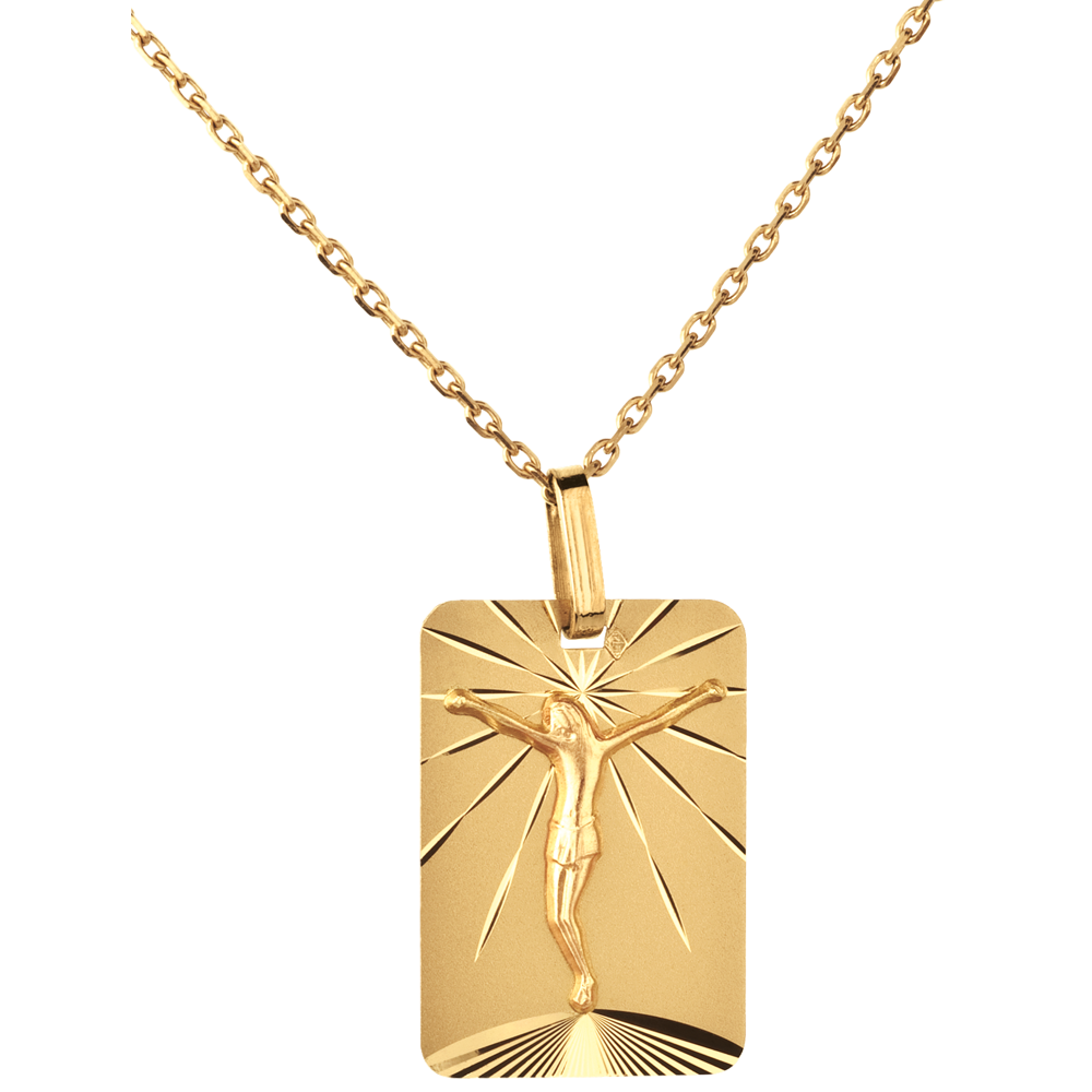 Médaille Plaque Christ - or jaune 18 carats