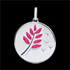 Médaille Rameau d'Olivier - Laque rose - 4 Diamants - or blanc 9 carats