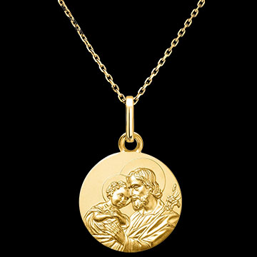 Médaille Saint Joseph et l’Enfant Jésus – Or Jaune 9 carats