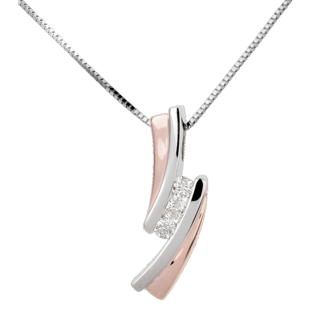Pendentif Nid Précieux - Trilogie diamant - 3 diamants - or blanc et or rose 18 carats