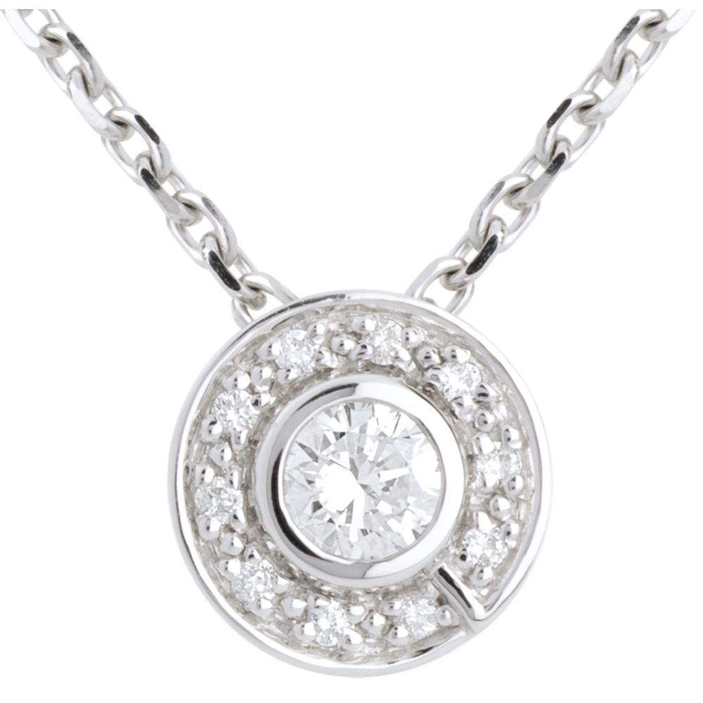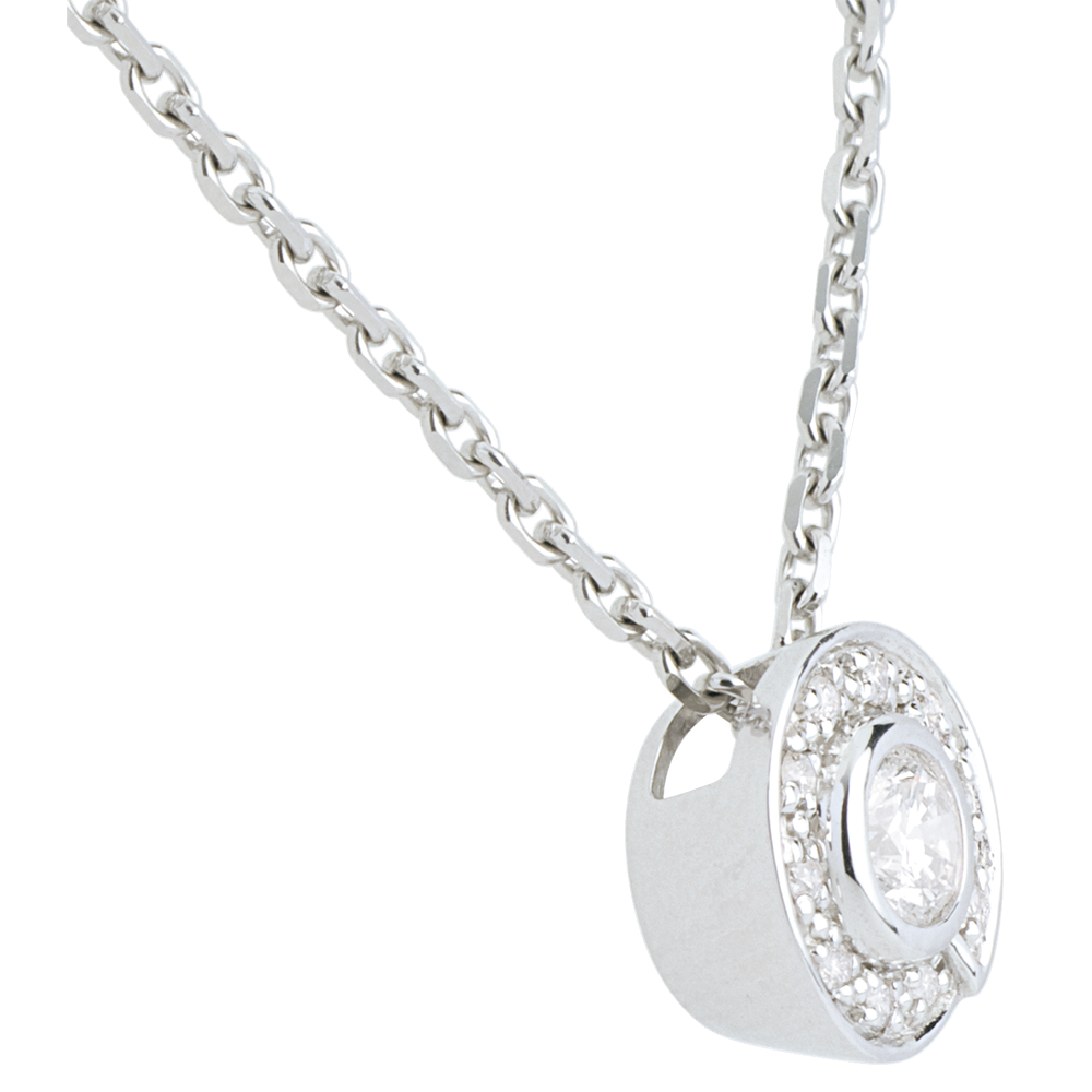 Pendentif bouton or blanc 18 carats - 0.19 carat
