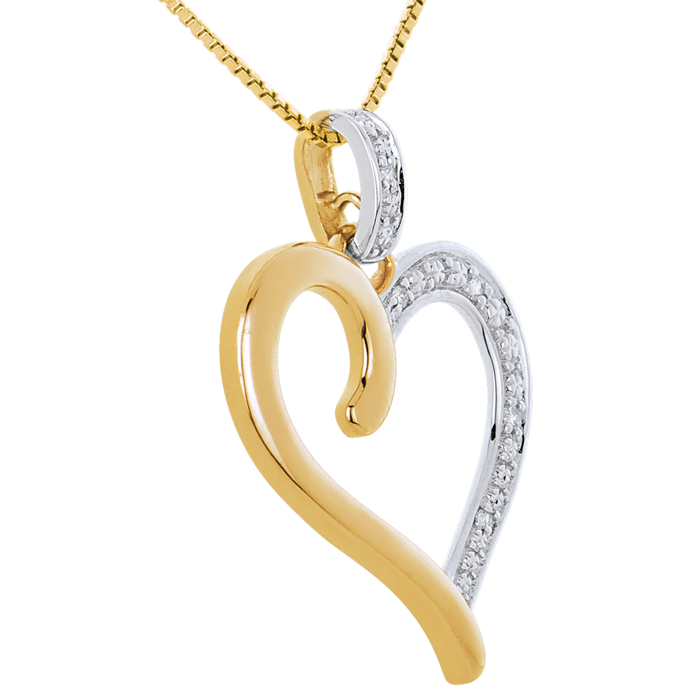 Pendentif Coeur Amazone - or blanc et or jaune 9 carats