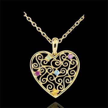 OISEAU DE PARADIS Nº 10Pendentif Coeur - Or jaune 9 carats - Améthyste, Citrine jaune, Peridot, Rhodolite, Topaze bleue ID : 2291 5 (6)
