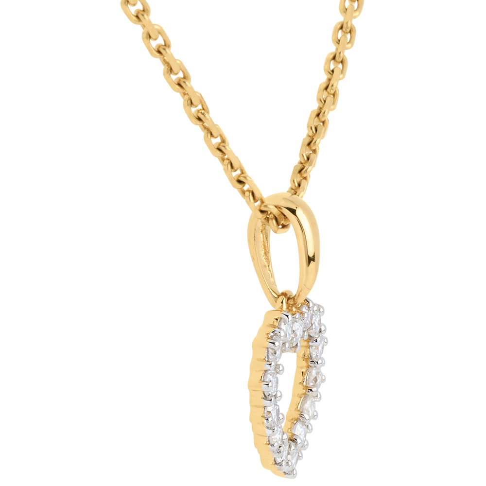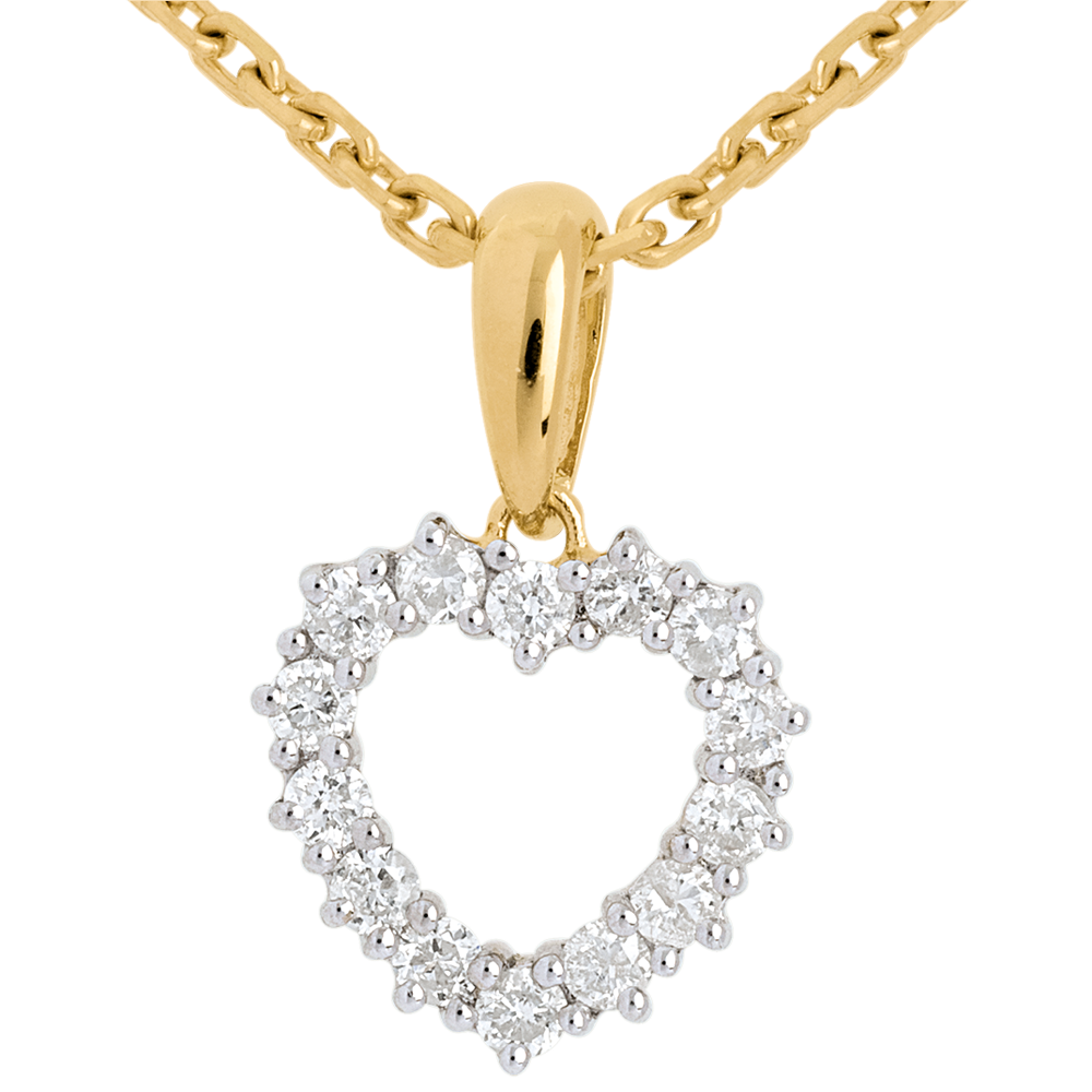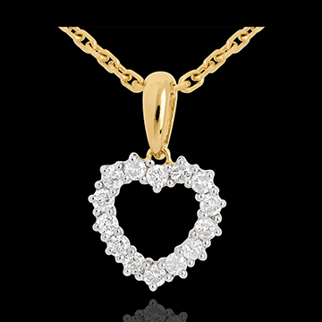 Pendentif Coeur échancré diamants - 0.25 carat - 14 diamants - or jaune 18 carats