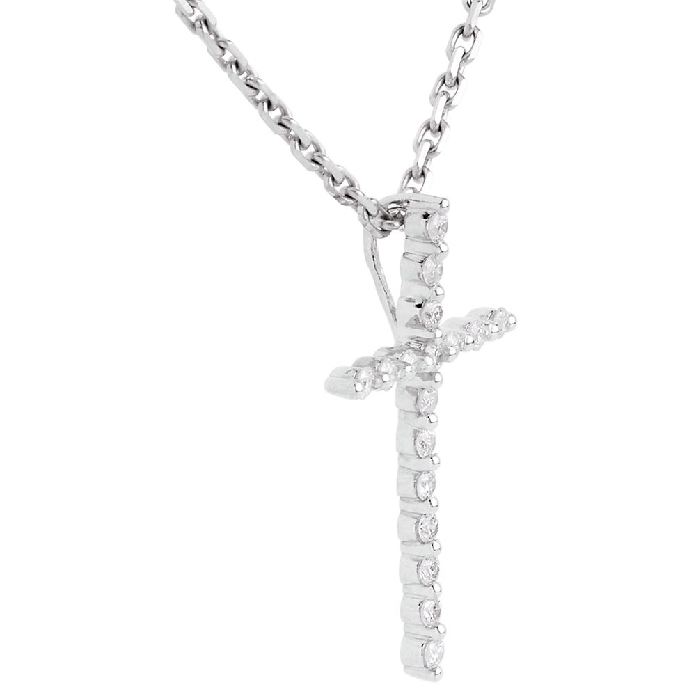 Pendentif croix en or blanc 18 carats - 17 diamants