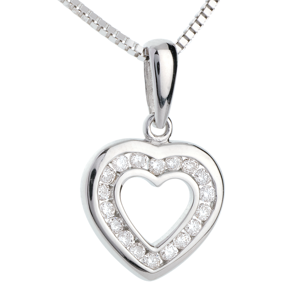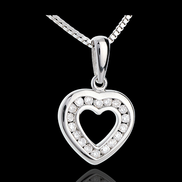 Pendentif coeur en abyme - or blanc 18 carats pavé - 18 diamants