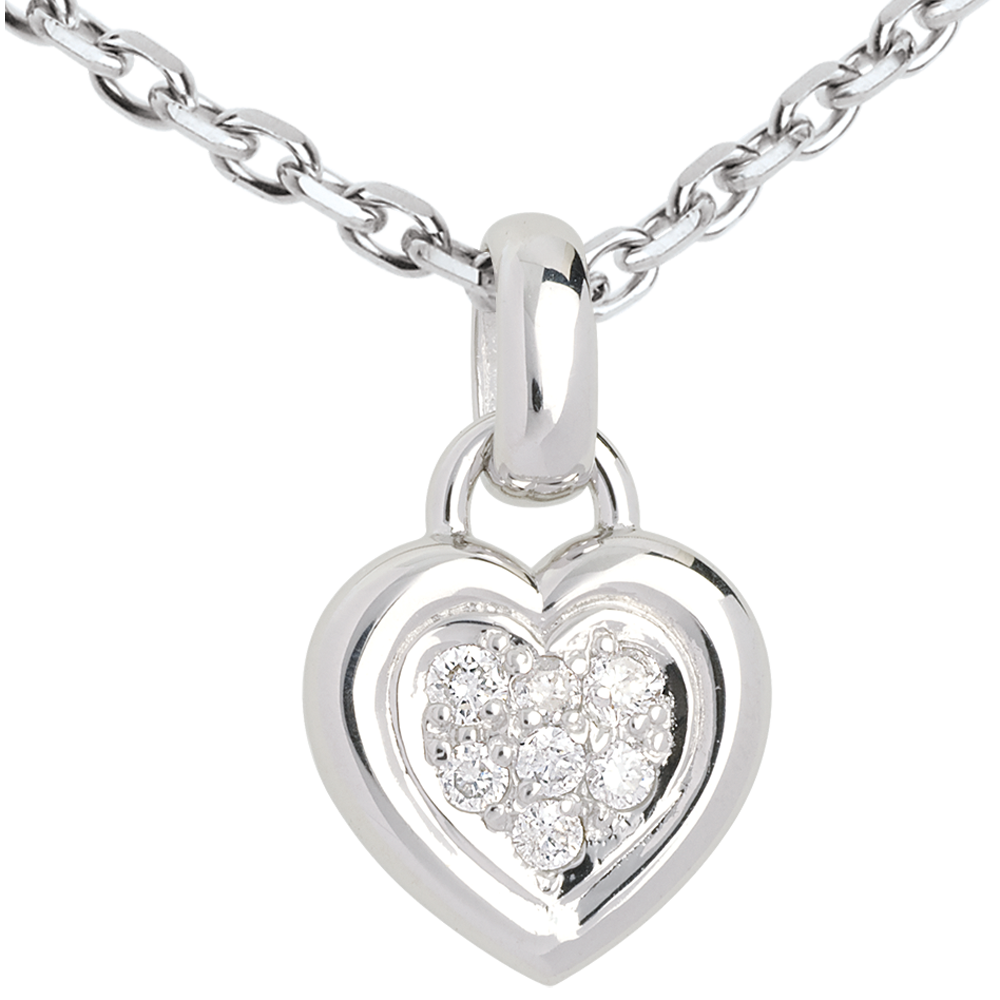Pendentif coeur pavé or blanc 18 carats - 0.12 carat - 7 diamants