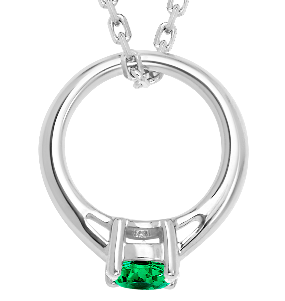 Pendentif "Cutie Ring" - or blanc 18 carats et émeraude synthétique