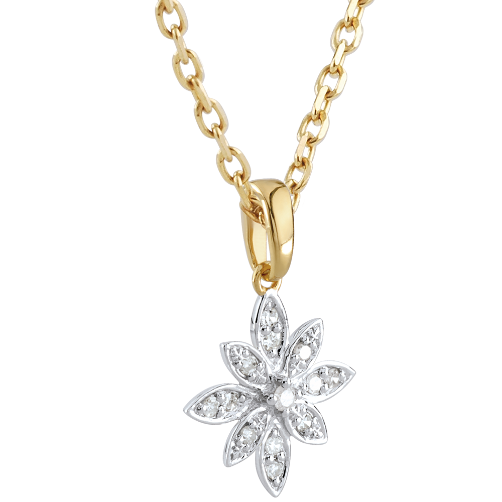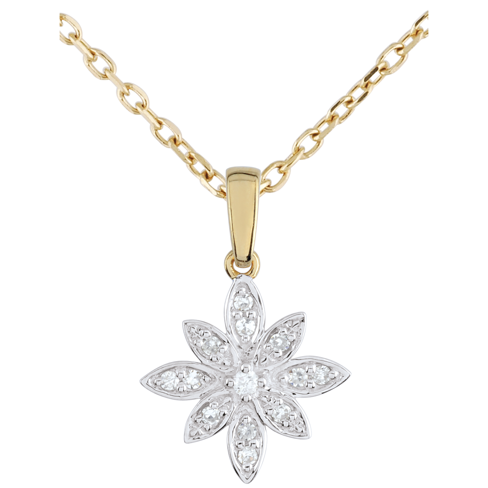 Pendentif Fleur d'étoile - or blanc et or jaune 9 carats