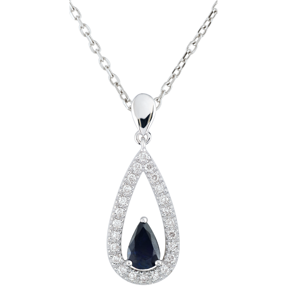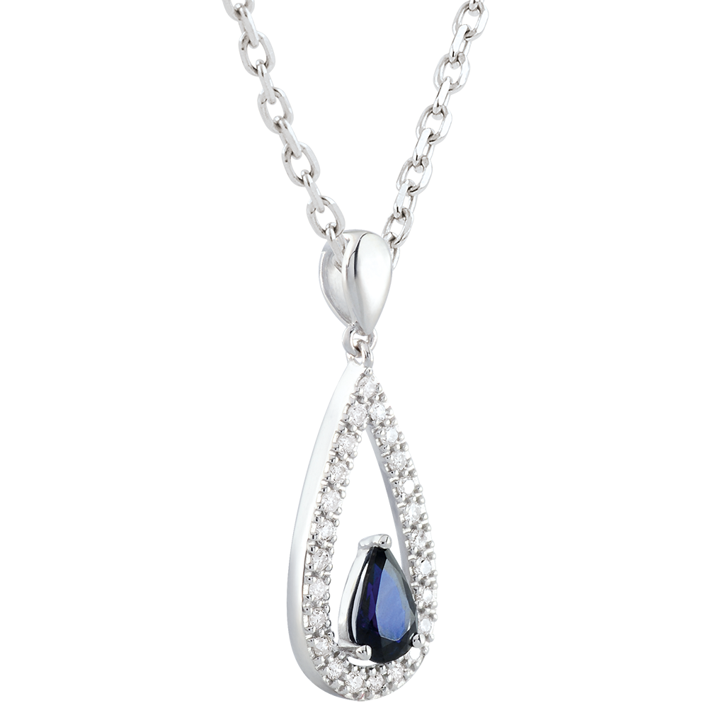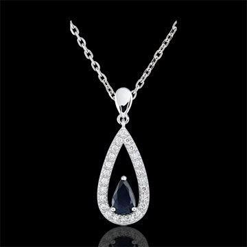 Pendentif goutte Soraya - saphirs et diamants - or blanc 9 carats