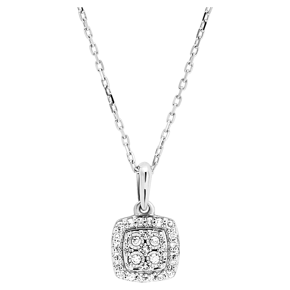 Pendentif Origine - Eclat Carré - or blanc 9 carats et diamants