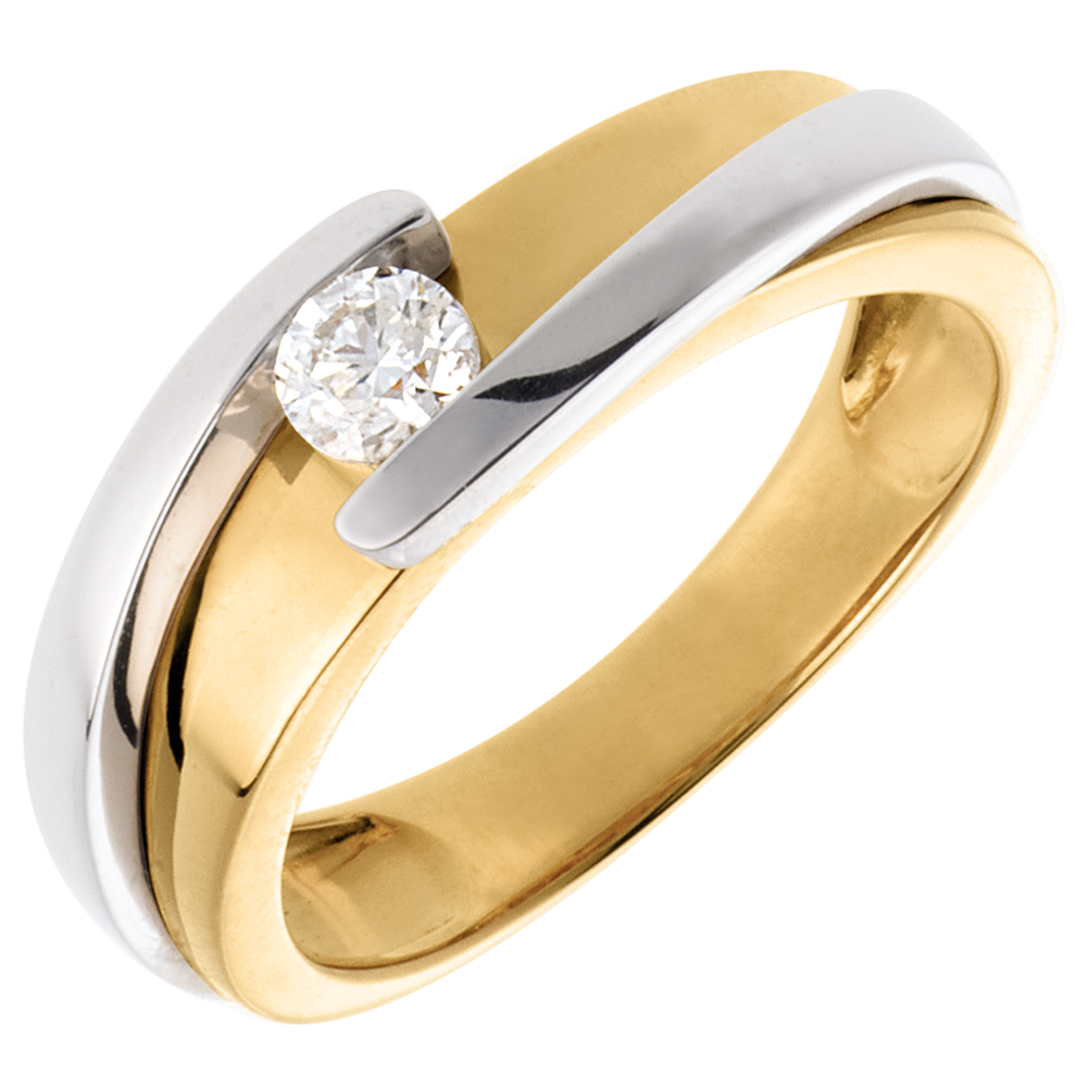 Solitaire Nid Précieux - Bipolaire - (TGM) - diamant 0.23 carat - or blanc et or jaune 18 carats