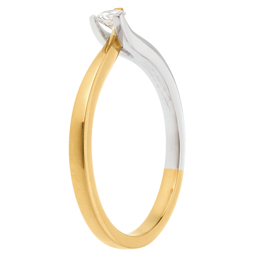 Solitaire Broche - diamant 0.11 carat - or blanc et or jaune 18 carats