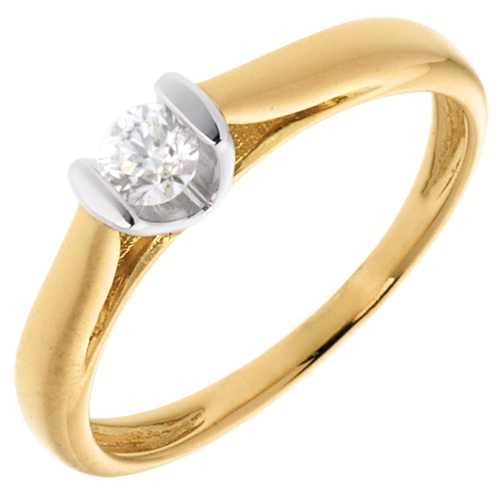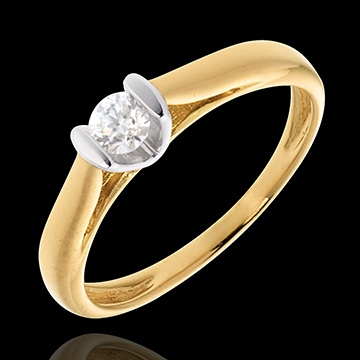 Solitaire Caldera - diamant 0.19 carat - or blanc et or jaune 18 carats