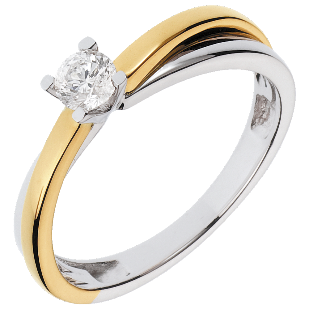 Solitaire Duetino - diamant 0.23 carat - or blanc et or jaune 18 carats