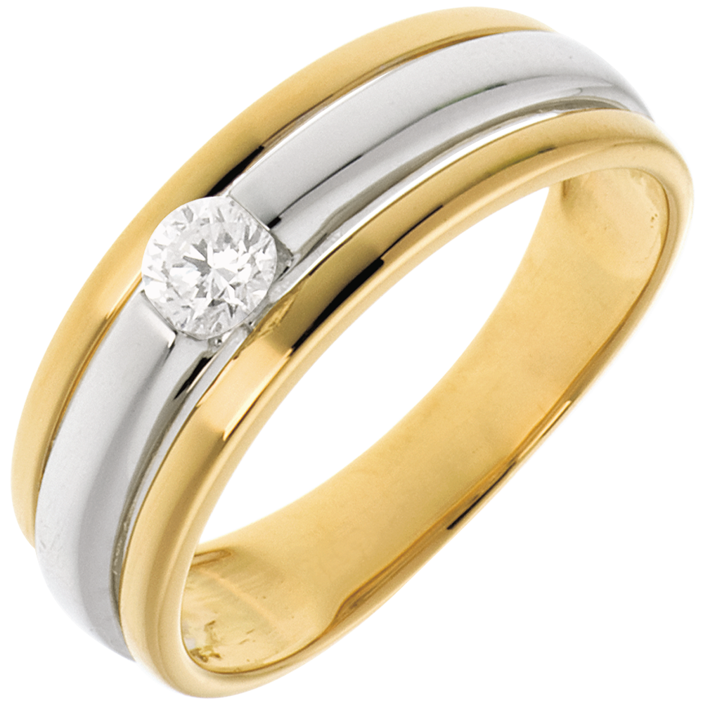 Solitaire Eclipse or blanc et or jaune 18 carats