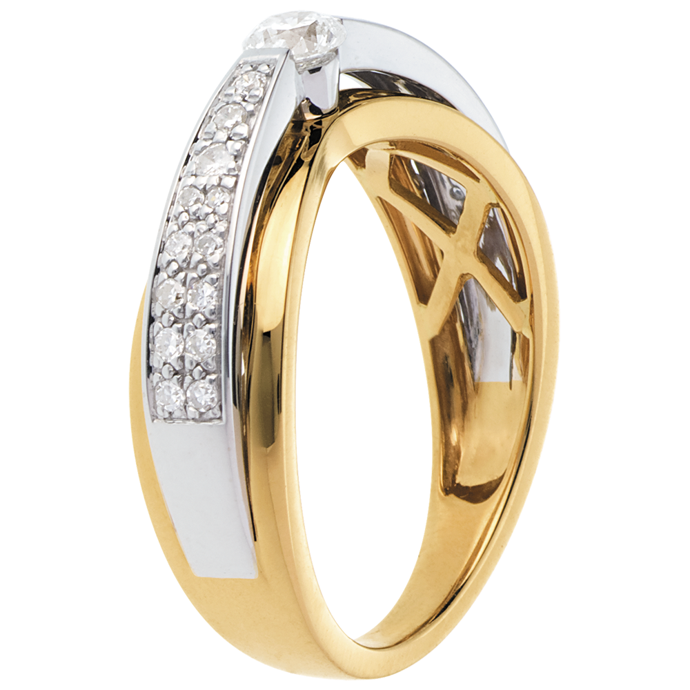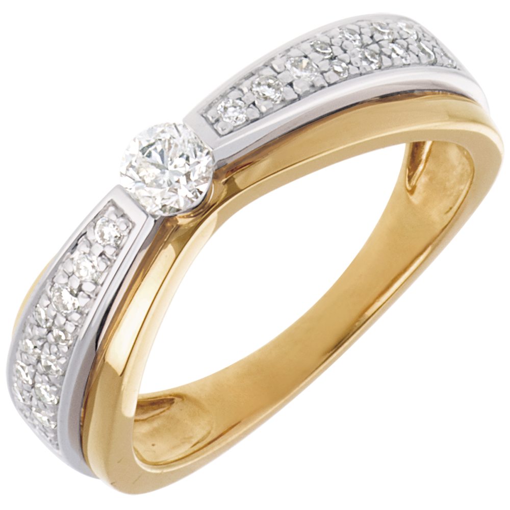 Solitaire Maharajah pavé - 27 diamants 0.38 carats - or blanc et or jaune 18 carats