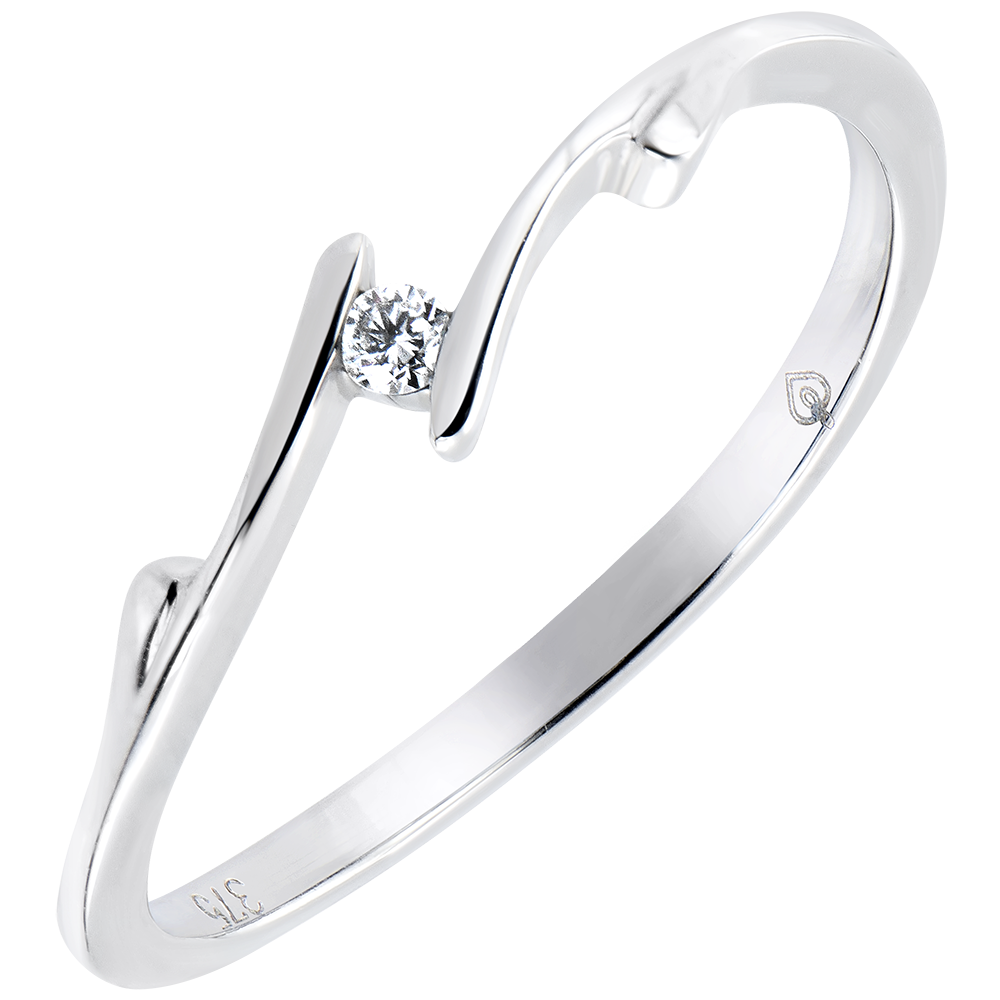 Une monture empreinte des courbes naturelles et végétales, telle une douce brindille au bourgeon diamant. A l'image d'une féminité délicate et sensible. 1 diamant : 0.02 carat - Or blanc (18 carats = 750/-): 1.3 g. Plus dimensions