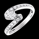 La grâce de l'inclinaison sublime le diamant solitaire de cette monture féminine, sertie d'éclats. Une bague de fiançailles singulière et éblouissante.
