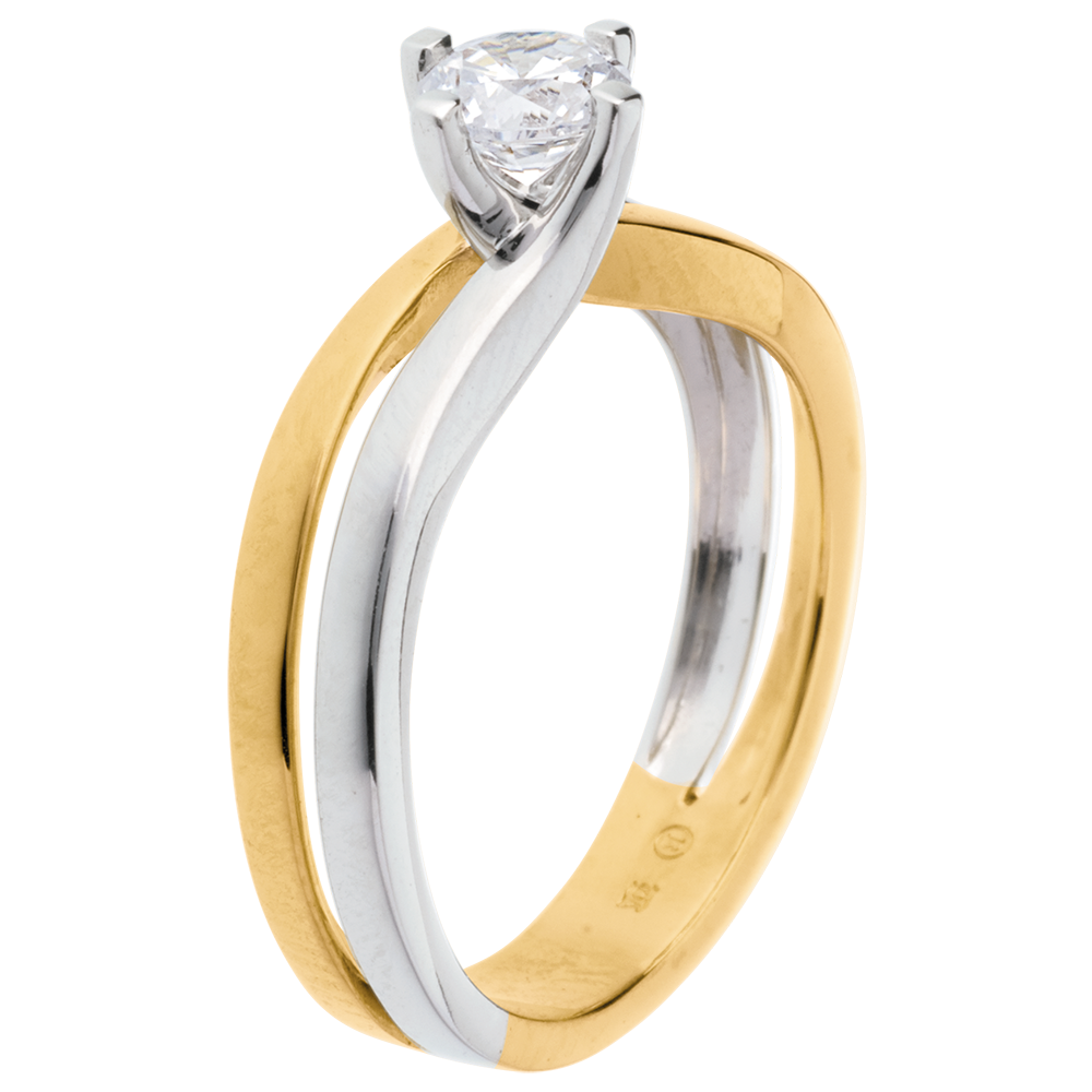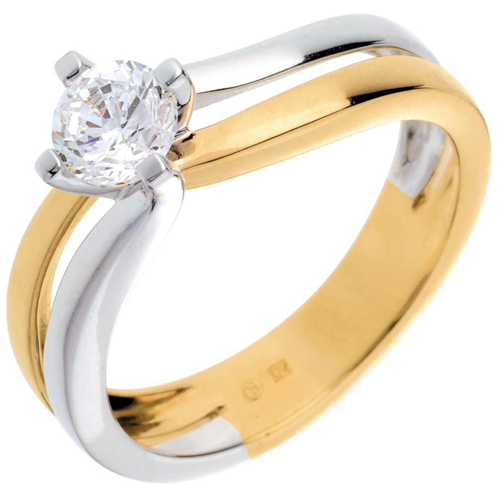 Solitaire Sillon (TGM) - diamant 0.52 carats - or blanc et or jaune 18 carats